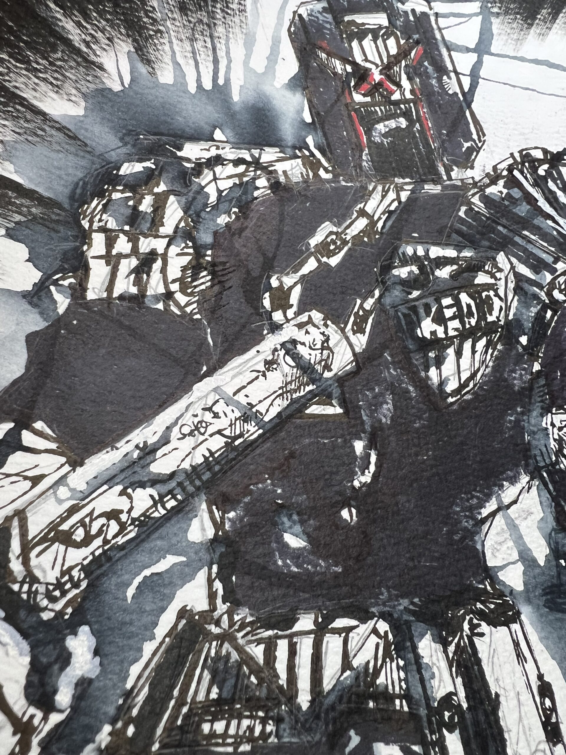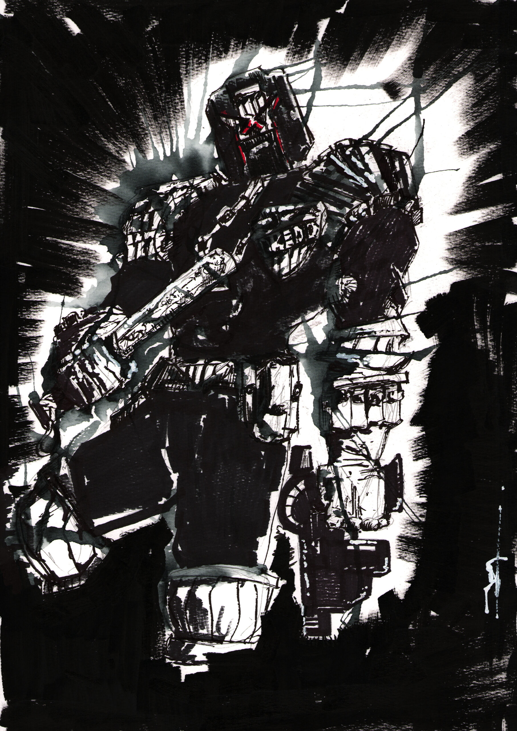 An original pen and ink illustration of Judge Dredd. This one of a kind drawing is signed by the artist (Jason Measures). 300gsm uncoated watercolour paper (Winsor & Newton).