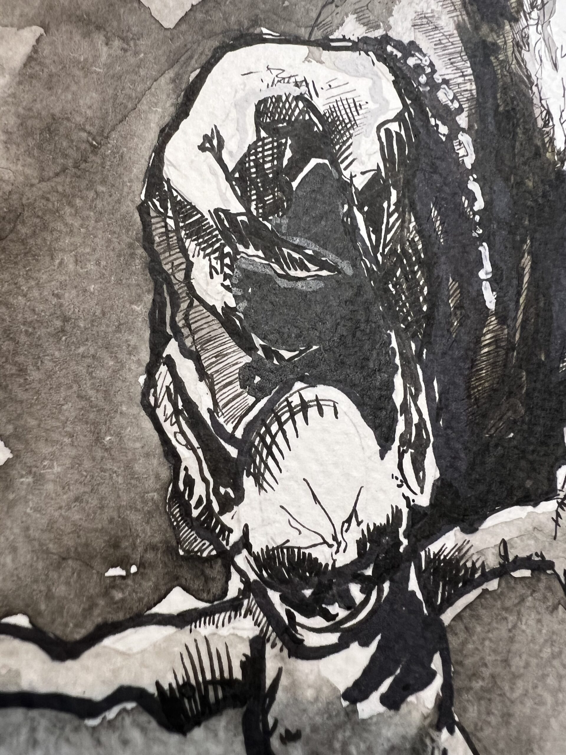 An original pen and ink illustration of Krampus. This one of a kind drawing is signed by the artist (Jason Measures). 300gsm uncoated watercolour paper (Winsor & Newton).